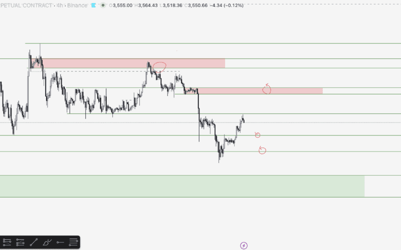 Ethereum’da bir önceki analizimizde yukarıdaki kırmızı kutu bölgesi, yani 4.800$ seviyelerinin önemli olduğunu ve fiyatın o bölgeye doğru gidebileceğini; ancak hareketin devamı için kazanılması gerektiğini belirtmiştik. Ayrıca, 4.500$ seviyesinin kritik bölge olduğuna, kaybedilmesi hâlinde ise 4.057$ seviyesine kadar bir geri çekilmenin mümkün olabileceğine değinmiştik.