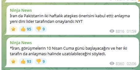 ABD ile İran arasında uzun süredir devam eden gerilimin ardından taraflar en az iki hafta sürecek geçici bir ateşkes üzerinde anlaşmaya vardı. Bu süre boyunca tarafların kalıcı bir barış anlaşması için müzakere masasında olacağı ifade edildi.