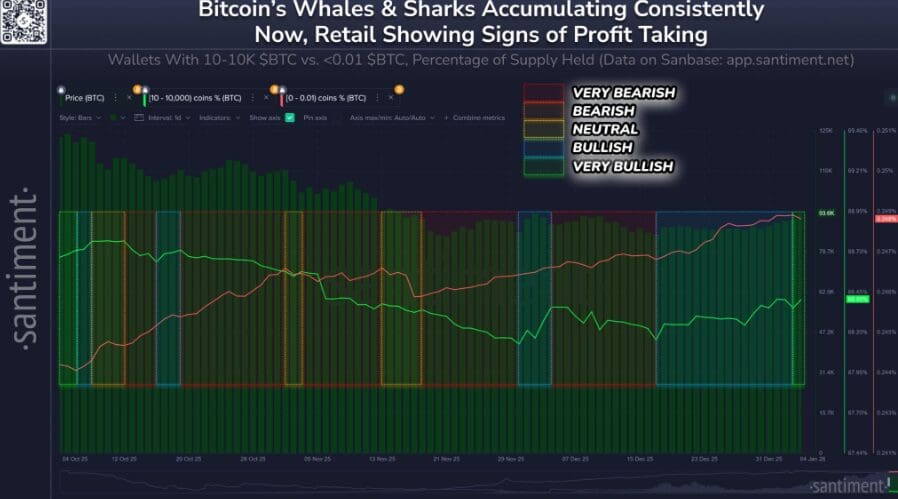 Santiment, kripto piyasalarının çoğu zaman küçük yatırımcıların tersine, büyük cüzdanların hareketlerini takip ettiğini vurgulayarak, bu ayrışmanın piyasada olumlu bir sinyal olarak değerlendirilebileceğini belirtti.