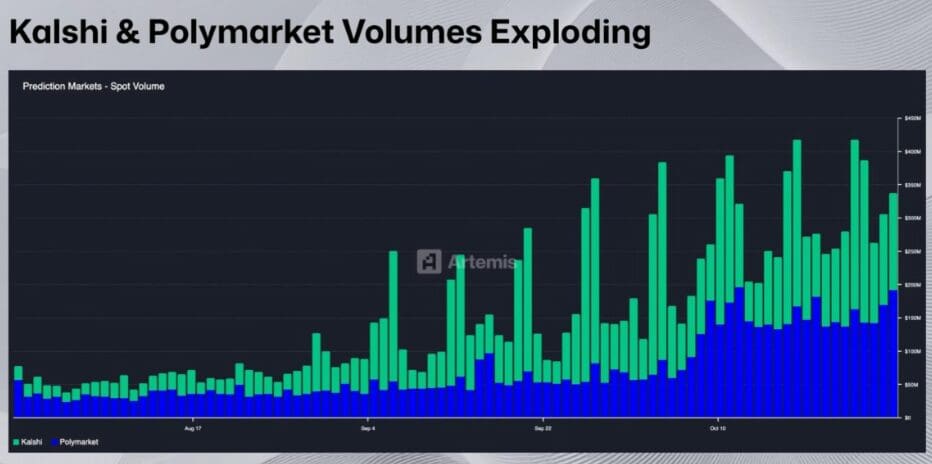 Sporting Crypto’nun raporuna göre prediction market ekosistemi, geçen yılın ağustos ayında yaklaşık 50 milyon dolar seviyesindeyken, kasım itibarıyla 340 milyon dolara ulaşarak yüzde 580’lik bir büyüme gösterdi.