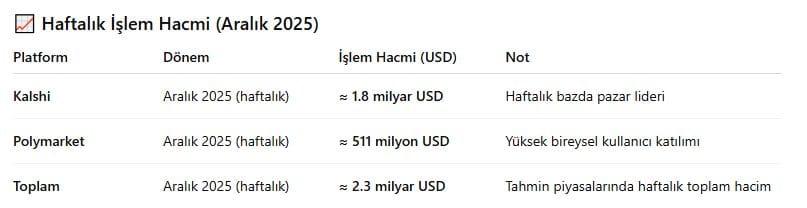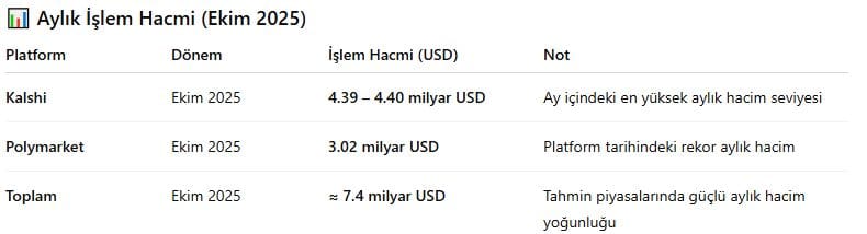 Ancak Polymarket ve Kalshi’nin toplam aylık hacminin 7–8 milyar dolar seviyelerine yaklaşması, tahmin piyasalarının artık kripto ekosisteminin yanında ayrı bir likidite merkezi oluşturduğunu net biçimde ortaya koyuyor.