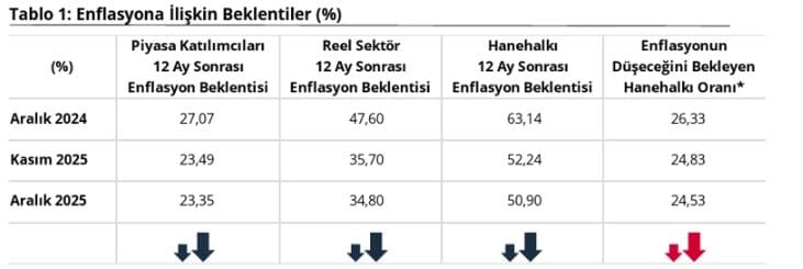 TCMB tarafından düzenli olarak yayımlanan ankette, farklı ekonomik aktörlerin enflasyon algısı ve beklentileri yakından izleniyor. Aralık ayı sonuçları, 2026 yılına yönelik beklentilerde genel bir iyileşmeye işaret etti.