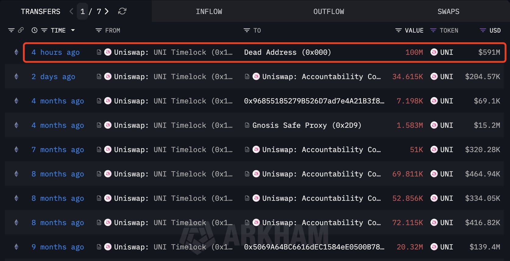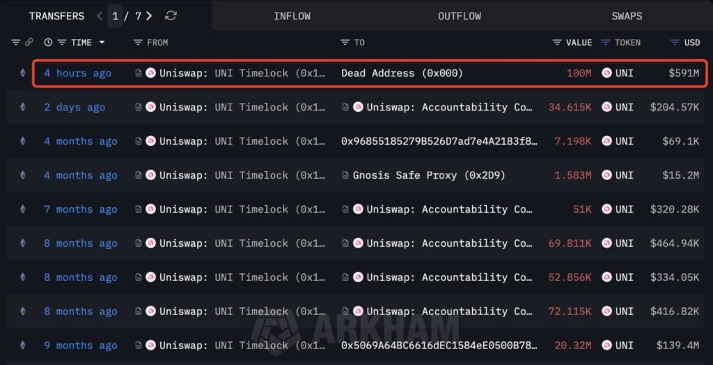 Perşembe günü oylamaya sunulan teklif, %99,9 gibi neredeyse oy birliğiyle kabul edilmişti. Arkham’a göre onayın ardından Uniswap, protokol hazinesinde tutulan UNI token’larının önemli bir bölümünü yakarak toplam arzı doğrudan azalttı.