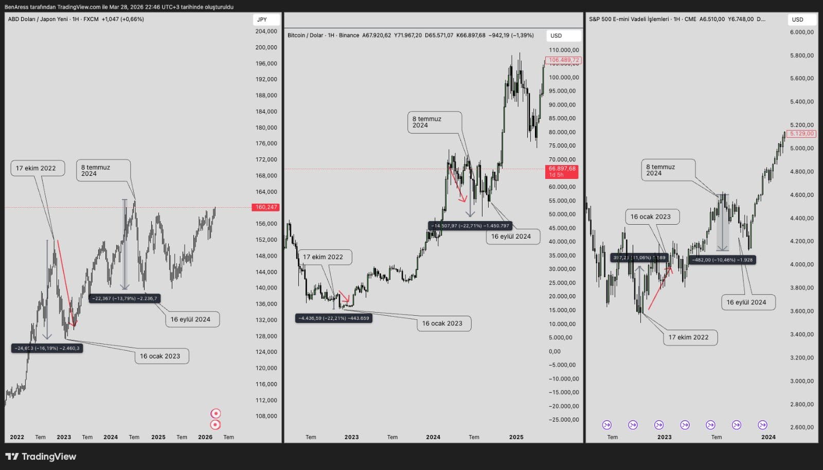 Bugün parite yeniden aynı seviyeye dayanmış durumda. Bu da doğal olarak şu soruyu öne çıkarıyor: Benzer bir müdahale yeniden gelirse, riskli varlıklarda yeni bir satış dalgası yaşanır mı?